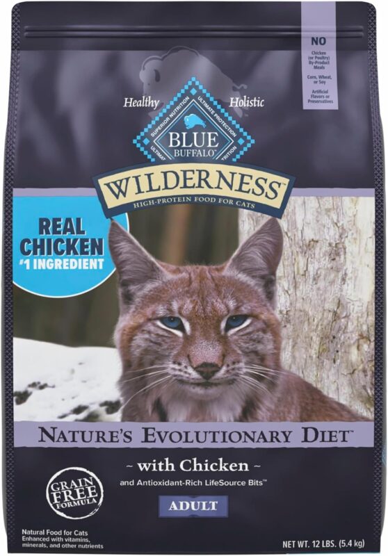 Blue Buffalo Wilderness Natural Adult Dry Cat Food, High-Protein and Grain-Free Diet, Supports Healthy Muscle Development and a Healthy Immune System, Chicken, 12-lb. Bag